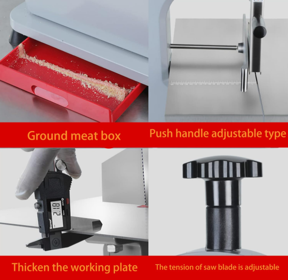حوّل مهمة تقطيع اللحوم والعظام إلى عملية سهلة وسريعة مع منشار اللحم والعظام الكهربائي. مع هذا الجهاز سوف تتمكن من تقطيع مختلف أنواع الأطعمة الصلبة مثل اللحوم المجمدة، الدجاج بالعظم، الذرة، والأسماك المجمدة بكل دقة وأمان. كما أنه مصنوع من مواد متينة مقاومة للصدأ، ورغم صلابته، مرن جدًا أثناء الاستخدام، الأمر الذي يجعله الخيار الأمثل لمحلات الجزارة، المطاعم، أو حتى الاستخدام التجاري اليومي.